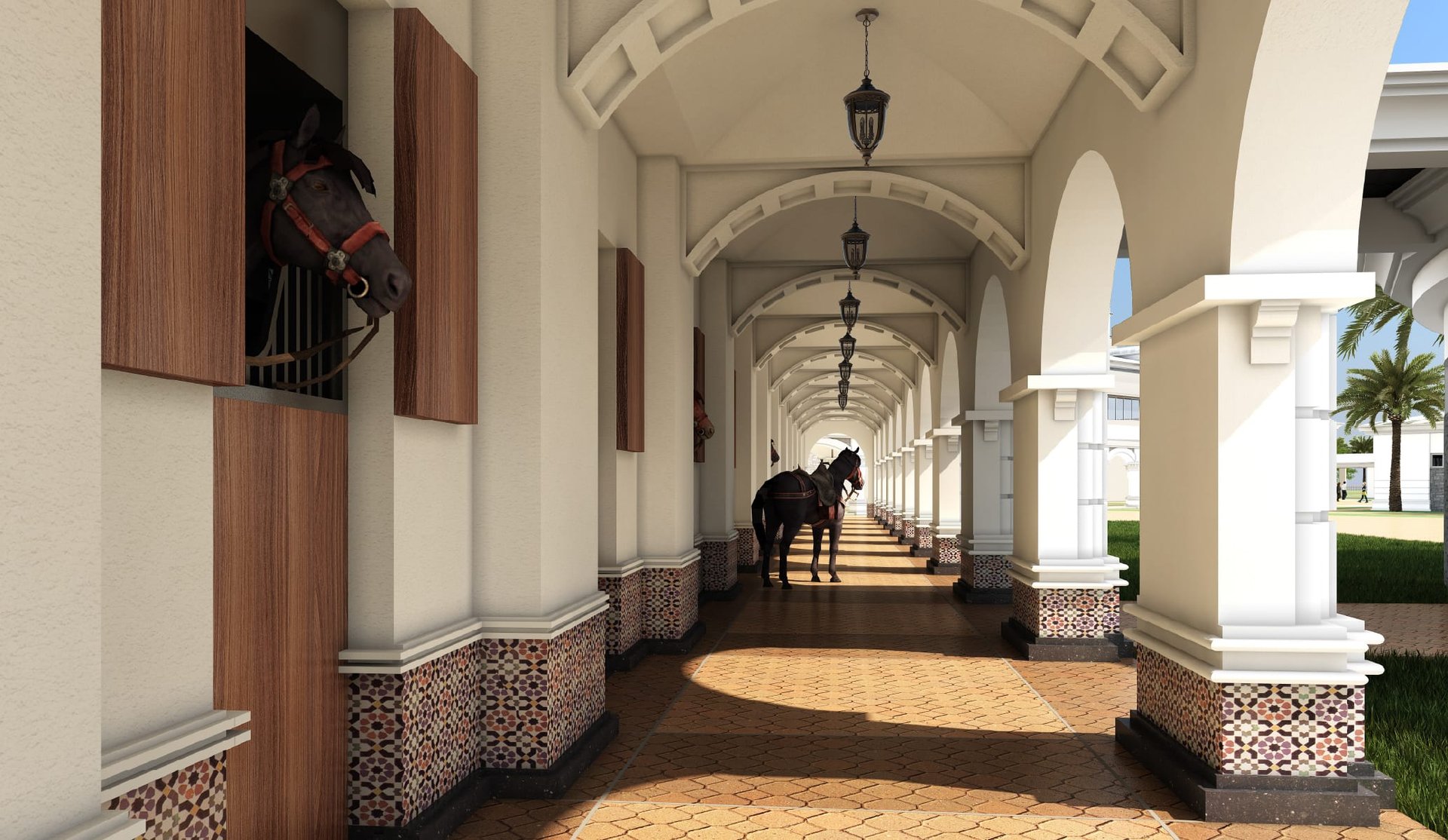 These 120 ultra-luxurious stables redefine equine care with premium finishes and cutting-edge stable technology. A trailblazer in the industry, the facility boasts an organic horse walker, state-of-the-art equine spa, and high-performance gym – all designed to optimize health and performance. Meticulously crafted with elite materials and innovative systems, it sets a new benchmark for horse wellness in Qatar. Where opulence meets functionality, this visionary complex cements Doha's status as a global hub for equestrian distinction.
