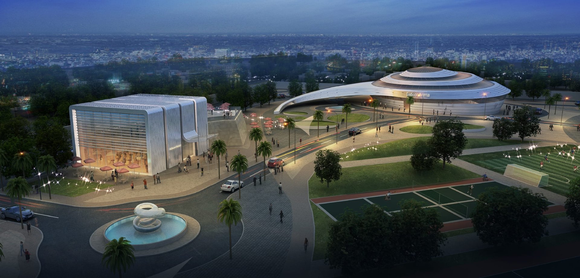 This state of the art sports center was designed for the Zayed Higher Organization for Humanitarian Care and Special Needs, located in Baniyas, which consists of an administration office, multi-purpose hall, grand stand, shooting club, bowling center, swimming pool, outside playing courts, horse stables, small horse riding training course, gym, mosque and many other contemporary designed facilities.